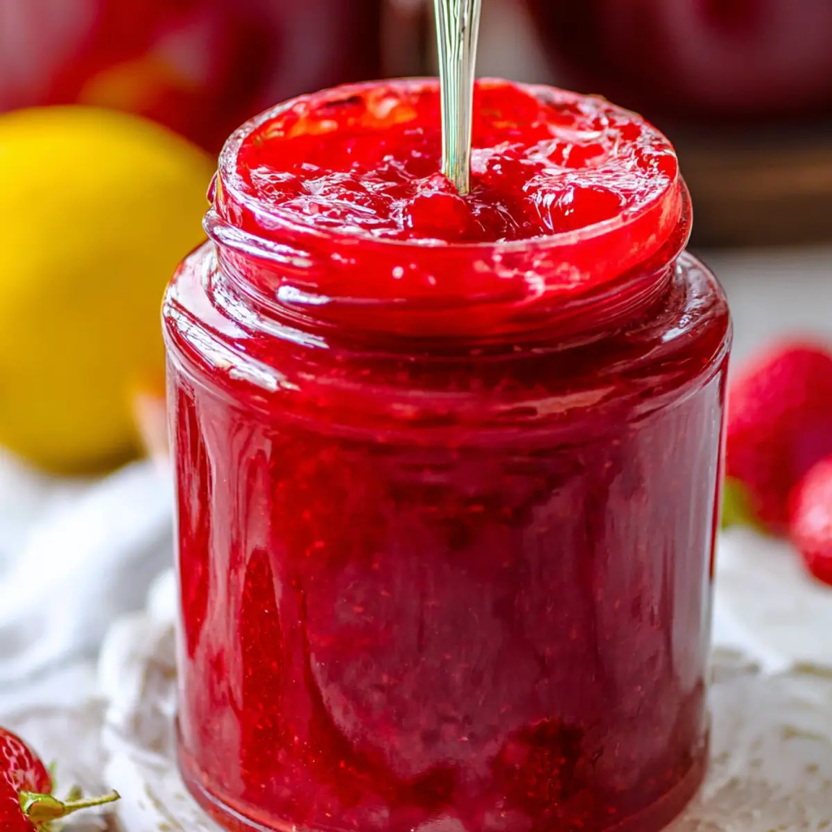 • Zitronensaft – Bringt eine leichte Frische und sorgt dafür, dass die Erdbeermarmelade nicht zu süß wird. Noch dazu hilft die Säure, das natürliche Gelieren zu unterstützen und die Farbe zu bewahren.