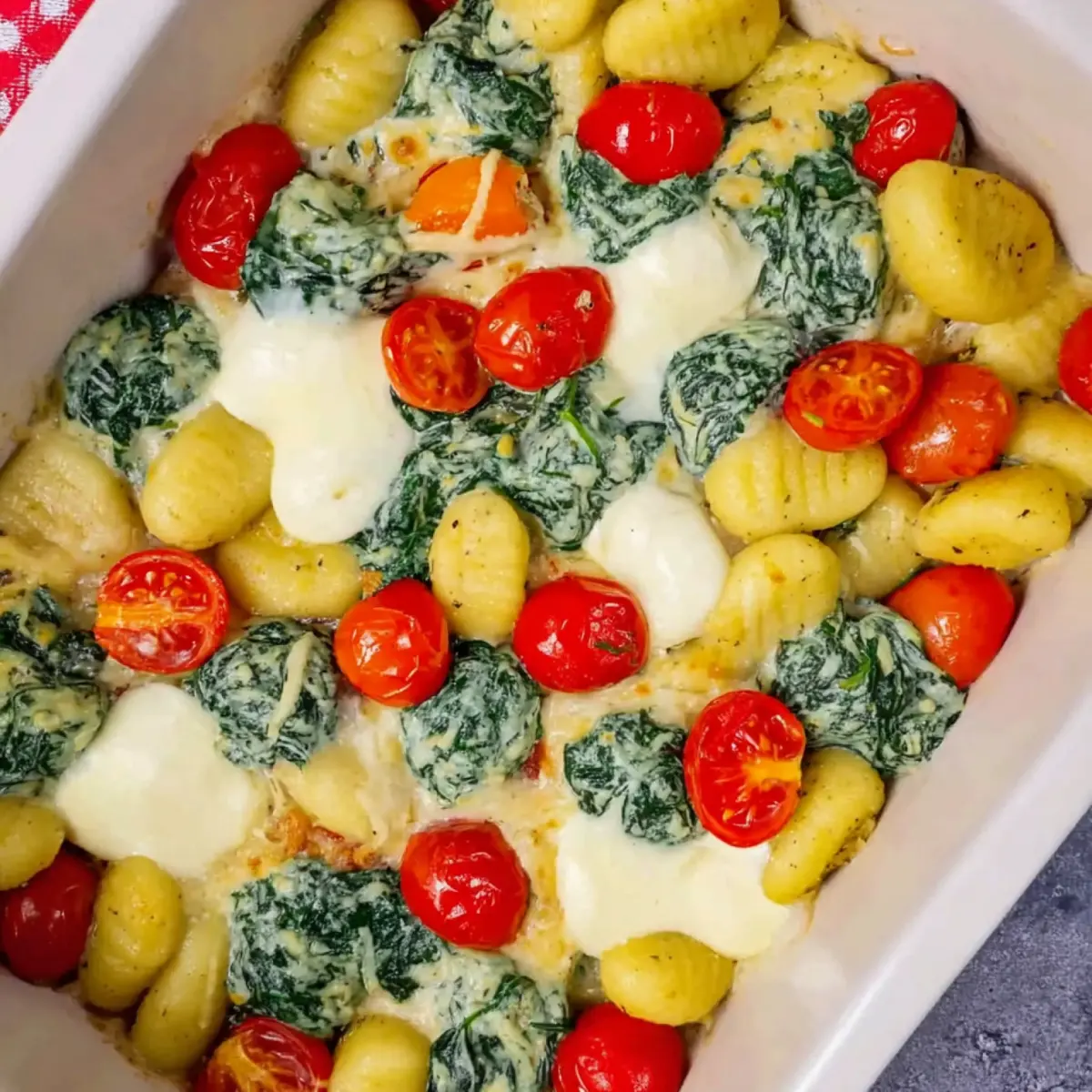 Gnocchi Auflauf mit Spinat, Tomate und Mozzarella: Wenn der Auflauf alles verwandelt