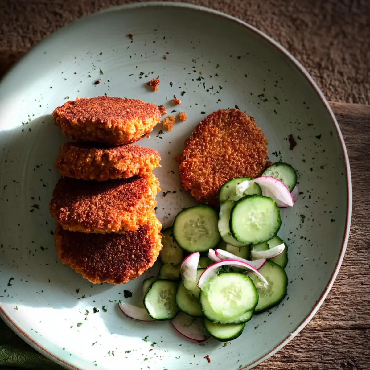 - Salat mit Knoblauchdressing, Feta, Nüssen und Äpfeln: Ein frischer Salat, der mit den knusprigen Bratlingen hervorragend harmoniert und für Abwechslung sorgt.