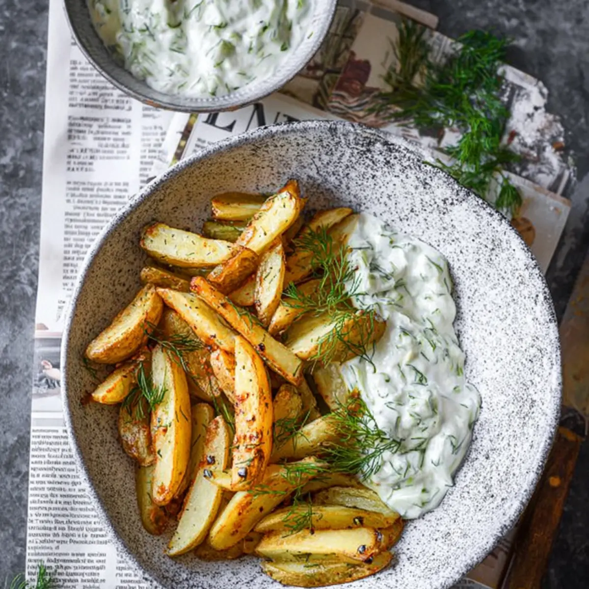 Kartoffelspalten mit Gurkendip – Knusprig und Frisch