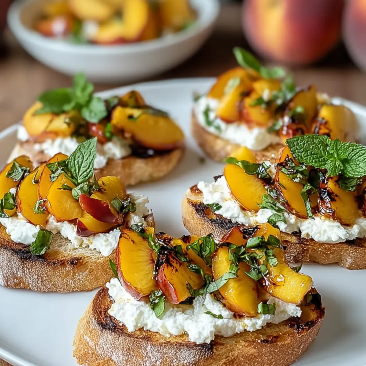 Pfirsich Bruschetta mit geschlagenem Ricotta ist mehr als nur ein Snack – sie fängt die Leichtigkeit des Sommers in jedem Bissen ein. Süße, Frische, cremige Ricotta und der Knusperkick des gerösteten Brots machen sie zum kulinarischen Kurzurlaub.