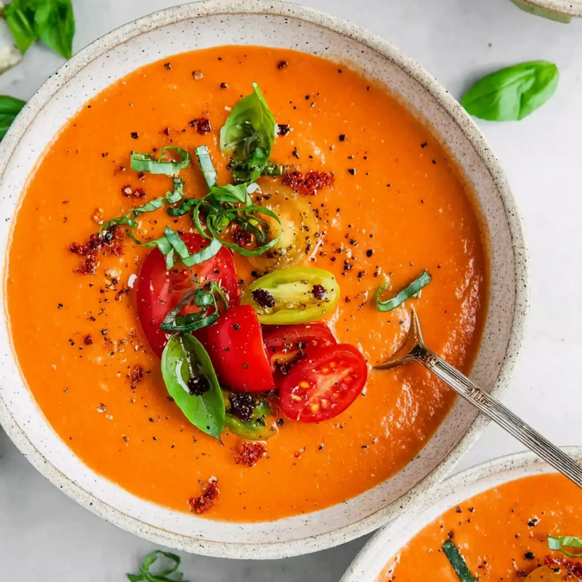 Der Moment, wenn der erste Löffel an die Lippen kommt, ist fast ein kleines Ritual – erst spürt man die Kühle, dann die Fülle von Tomate, den Hauch Knoblauch und diese leichte Schärfe vom Pfeffer. In der Mitte schwingt das Olivenöl, das alles zusammenhält, und im Nachgang tanzt ein bisschen Zitrone durch das Ganze. Die Paprika gibt Süße, die Gurke ein bisschen Knack. Manchmal bleibt ein winziger Basilikumfetzen an der Lippe hängen – genau so soll es sein.