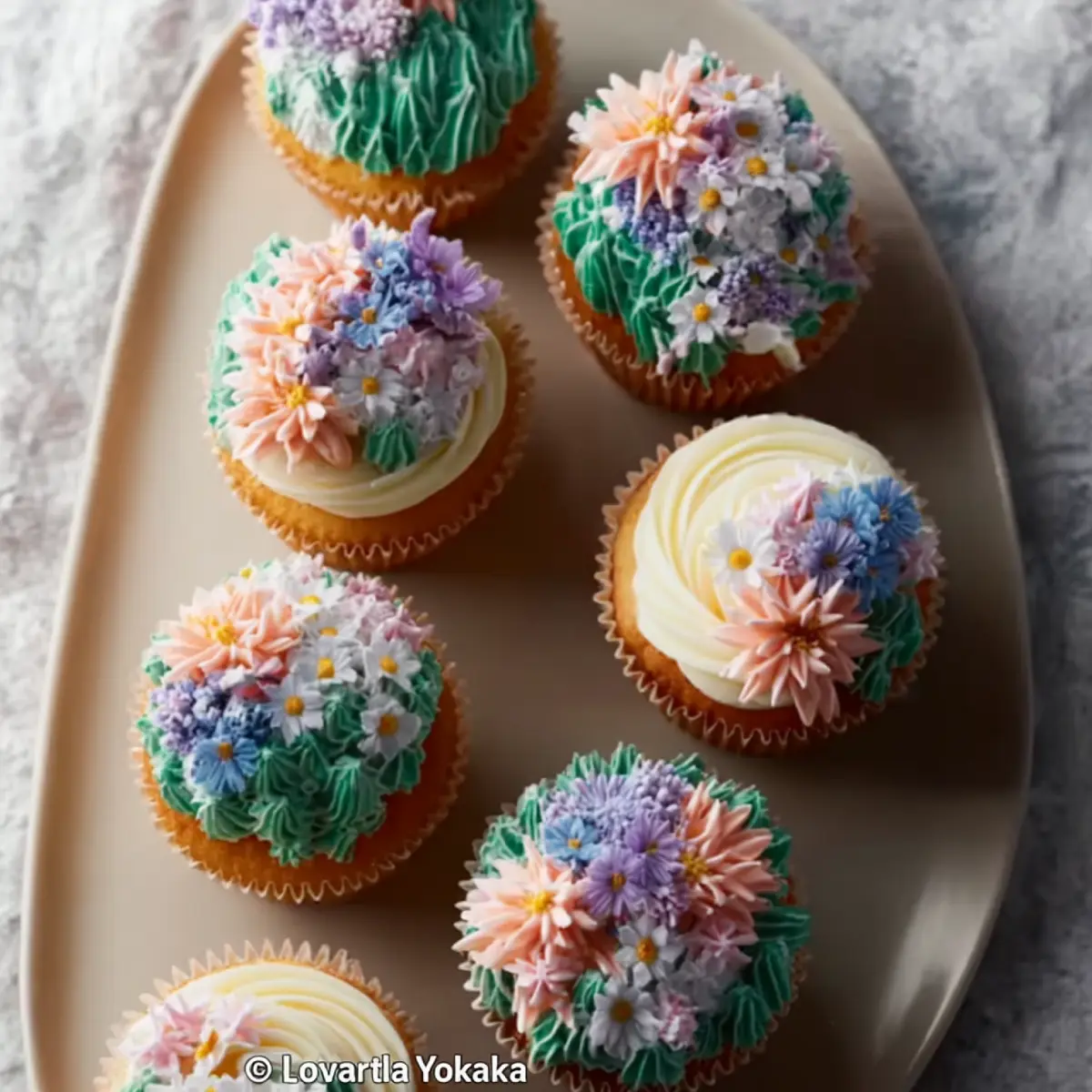 - Dekorieren und servieren: Füge zum Schluss essbare, getrocknete Blumen hinzu, wenn gewünscht, für einen zusätzlichen zarten, garteninspirierten Akzent. Arrangiere die Cupcakes auf einem Servierteller und lasse das Frosting etwas anziehen, bevor du sie servierst. Diese Wildblumen Cupcakes sind perfekt für Frühlingsfeiern, Baby-Shower, Geburtstagsfeiern oder jede Gelegenheit, die nach einem schönen Blumen-Dessert ruft.